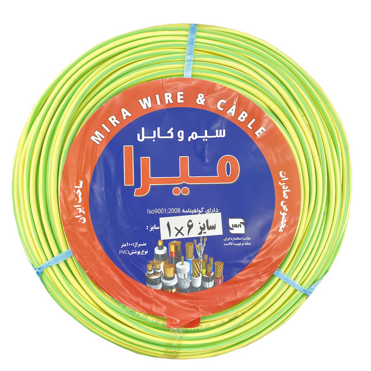 - سیم افشان تک رشته 6 ارت - کیفیت مناسب - در حد استاندارد - دارای 100 رشته - دارای روکش PVC - تحمل جریان تا 32 آمپر( بسته به متراژ متفاوت است) - مناسب برای سیم کشی ساختمان و مصارف عمومی